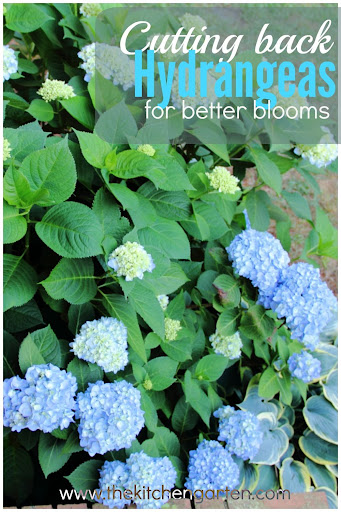 To reduce the size of a hydrangea that blooms on new wood, cut off about one-third of each stem in late fall or early spring before it begins to leaf out. If your hydrangea blooms on old wood, prune right after it has bloomed when the flowers are fading.